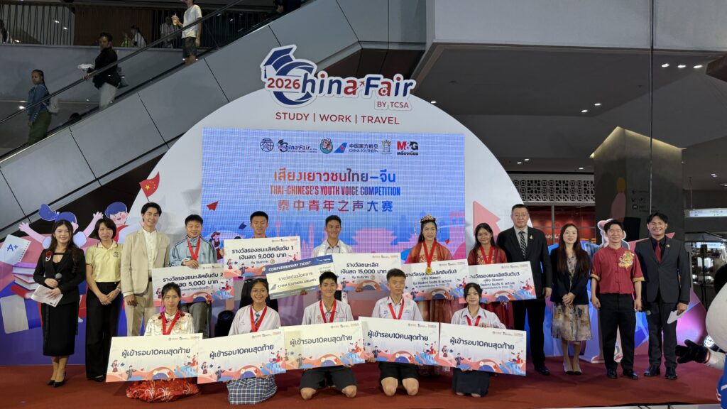 นอกเหนือจากการไปเรียนต่อยังต่างประเทศแล้ว ภายในงาน China Fair 2026 ยังมีการส่งเสริมให้นักเรียนที่อยู่ในไทย ศึกษาด้านภาษาจีนเพิ่มเติม โดยงานในปีนี้เป็นครั้งแรกที่มีการประกวดสุนทรพจน์ภาษาจีน ‘เสียงเยาวชนไทย-จีน’ รอบชิงชนะเลิศ โดยผู้ที่ชนะเลิศในการแข่งขันครั้งแรกนี้ ได้แก่ นายศรุต เฉลิมเจริญกุล จากโรงเรียนราษฎร์วิทยา (ตี่มิ้ง) ตาก ที่ได้รับรางวัลเป็นบัตรโดยสารเครื่องบิน อุปกรณ์กีฬา และเงินรางวัลจาก BullVPN 15,000 บาท