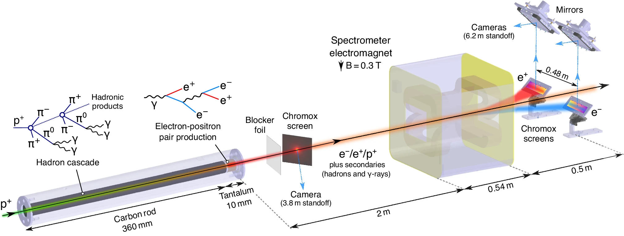 การจำลองสภาวะข้างต้นนี่ ทีมนักวิทยาศาสตร์จำเป็นต้องอาศัยเครื่องเร่งซูเปอร์โปรตอนซินโครตรอน (SPS) ที่ CERN ในการเร่งโปรตอนให้ไปชนกับนิวเคลียสของคาร์บอน จนเกิดฝนของอนุภาคมูลฐานหนึ่งในนั่น คือ ไพออนที่จะสลายตัวและให้รังสีแกมม่าพลังงานสูงออกมา ซึ่งรังสีแกมม่านี่จะมีการตอบสนองต่อสนามไฟฟ้าของแทนทาลัม ทำให้เกิดคู่อิเล็กตรอนและโพซิตรอน โดยทีมวิจัยใช้โปรตอนจำนวน 100 พันล้านอนุภาคเพื่อทำให้เกิดพลาสม่าคู่อิเล็กตรอน-โพซิตรอนเชิงสัมพัทธภาพ