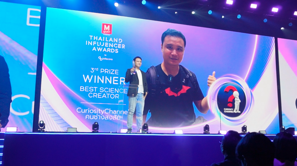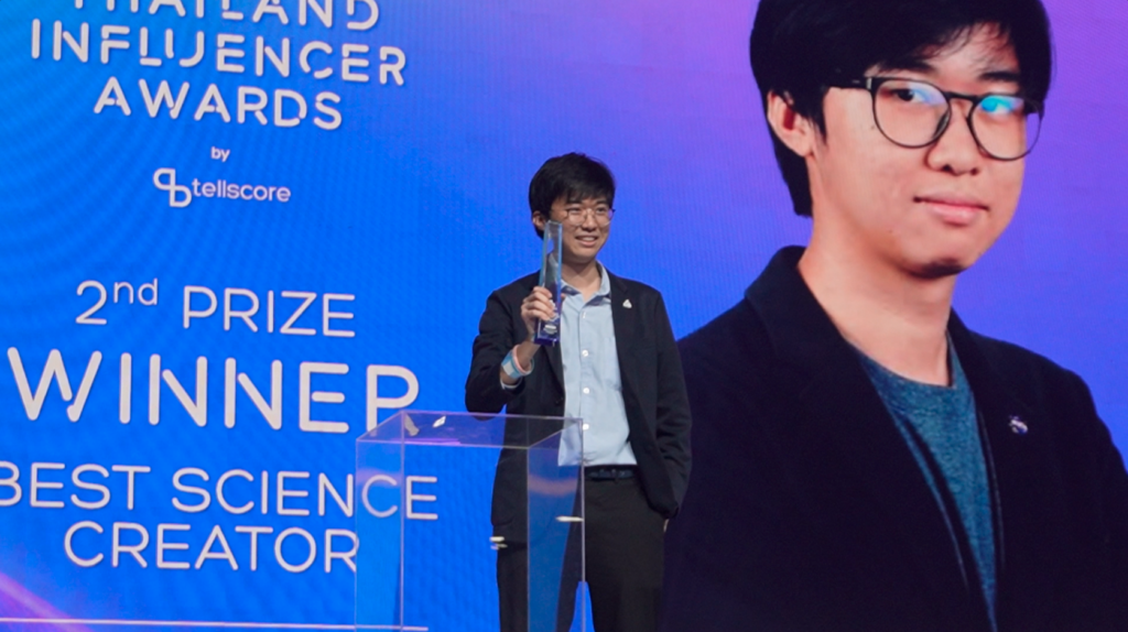 ครั้งแรกที่ Thailand Influencer Awards มอบรางวัลให้กับอินฟลูเอนเซอร์ด้านวิทยาศาสตร์ ในหมวดที่ชื่อว่า Best Science Creator ในงานที่ชื่อว่า The Mall Lifestore Presents Thailand Influencer Awards 2024 by Tellscore ณ ห้างสรรพสินค้า The Mall Life Store บางกะปิ เมื่อวันศุกร์ที่ 18 ตุลาคม 2024 ที่ผ่านมา